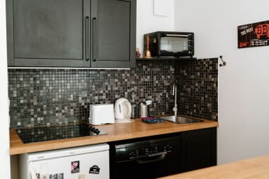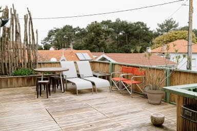 🏡 Layout and comfort: The apartment features a convivial living room with a convertible sofa offering a 140 cm bed. The open kitchen is modern and functional, with a bar for your meals. You can enjoy two terraces: one with a dining area offering an exceptional view of the Bassin, and the other, more spacious, furnished with deckchairs for relaxing in peace and quiet.