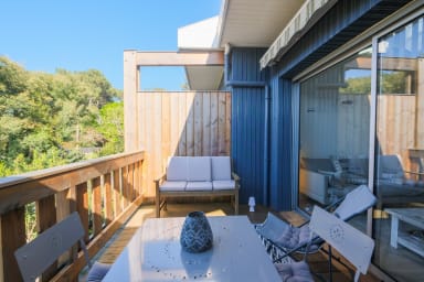 Découvrez l’Appartement du Port, charmant duplex, très fonctionnel et joliment décoré, situé en plein cœur du village ostréicole de Claouey, au Cap Ferret. À seulement 100 mètres de la plage, cet endroit est parfait pour ceux qui cherchent à se détendre tout en étant proches de tout.