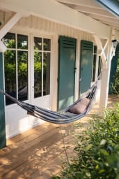 Une grande terrasse prolonge le tout avec plusieurs espaces distincts, ; Une première partie couverte avec une première table en fer forgé pour 6, un salon extérieur composé de 2 canapés, un hamac, la seconde partie de la terrasse amène à la piscine chauffée de 6x4 sécurisée par une bâche à barre. 2 chiliennes, 2 chaises longues et une grande table bois avec 2 bancs complètent cette partie extérieure lumineuse. Une plancha est à disposition côté cuisine.