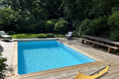 A l’abri des regards, en plein coeur de la nature, vous serez instantanément séduits par les volumes, la qualité de rénovation, la décoration soignée, le jardin arboré et la piscine chauffée qu’offre cette villa.