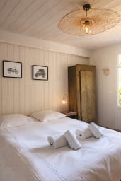 🔎 Équipements : Wi-Fi avec réflecteurs dans toutes les pièces de vie, cuisine toute équipée, lave-linge et sèche-linge, réfrigérateur, congélateur, plancha, piscine chauffée, ventilateur de plafond dans la grande suite à l’étage…